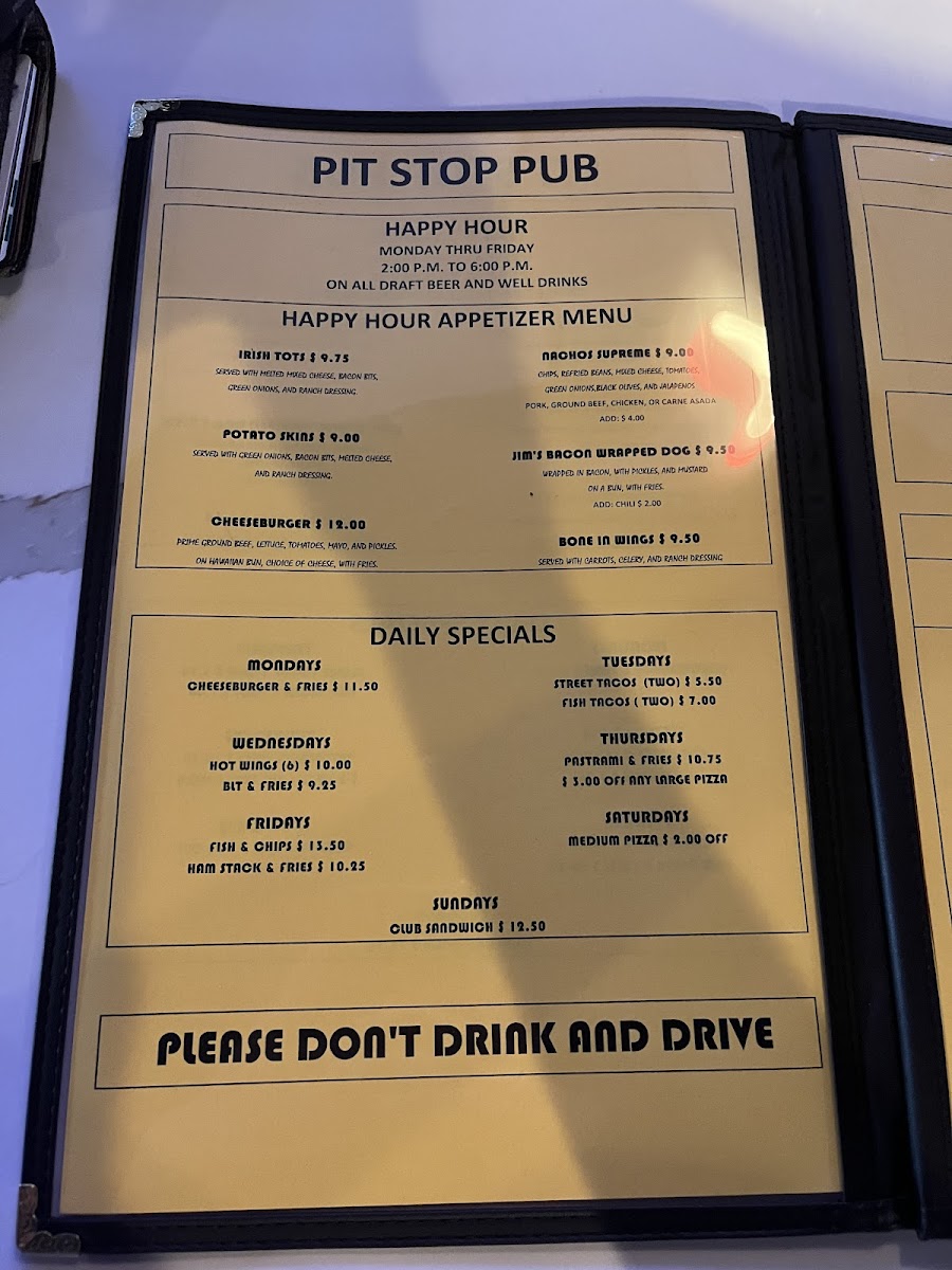 Located in the heart of Menifee, California, Pitstop Pub Sports Bar & Grill is the ultimate destination for sports fans and food lovers alike. This lively spot at 26900 Newport Rd offers an authentic pub experience, blending the thrill of live sports with a warm, inviting atmosphere. Whether you're drawn by the numerous TVs broadcasting everything from UFC fights to your favorite team’s game, or the friendly faces like TK the bouncer and Brandon the bartender creating an upbeat vibe, Pitstop Pub never disappoints.